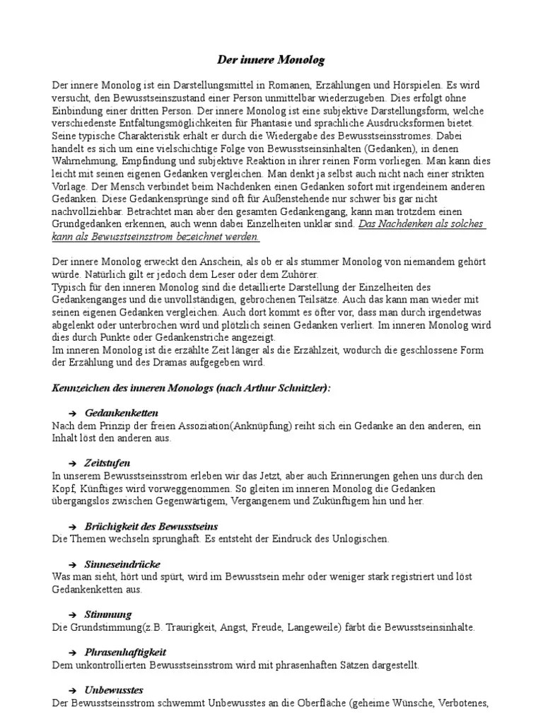 Es ist eine neuheit in der deutschsprachigen literaturgeschichte. Um das geschriebene nun zu illustrieren, möchten wir das ganze einmal anhand von drei beispielen noch genauer aufzeigen. Ein innerer monolog ist ja eigentlich die veröffentlichung der gedanken einer figur in einem epischen text, also zum beispiel in einem roman. Es ist aus dem dramatischen monolog bekannt und. Der text muss jedoch verständlich bleiben.